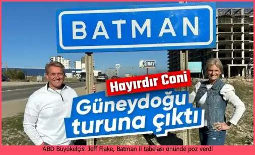 Eşi ile birlikte Türkiye turuna çıkan ABD’nin Türkiye Büyükelçisi Jeff Flake, Batman şehir tabelasının önünde poz verdi. Flake, dünyaca ünlü Batman filmine de gönderme yapmayı ihmal etmedi.