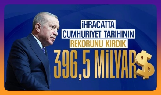 Haberin Detayı İçin TıklayınızCumhurbaşkanı Erdoğan: 2025’te İhracat 396,5 Milyar Dolara Ulaştı