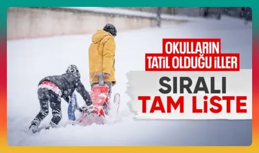 Türkiye genelinde etkisini sürdüren yoğun kar yağışı, fırtına, buzlanma ve düşük sıcaklıklar nedeniyle birçok il ve ilçede eğitime ara verildi. Meteoroloji uyarılarının ardından valilikler peş peşe tatil kararlarını açıkladı. İLK TATİL HABERİ ZONGULDAK’TAN GELDİ Zonguldak’ta kar, yağmur ve fırtınanın devam etmesi beklenirken, Vali Osman Hacıbektaşoğlu yarın okulların 1 gün süreyle …