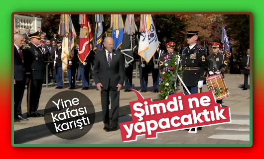 Kafası karışan ve ne yöne döneceğini bilemeyen Biden, kürsünün yanında bekleyen askere sordu. Askere, “Ne yapacaktık?” diye soran Joe Biden, “Yerinize geçin efendim” yanıtını aldı.