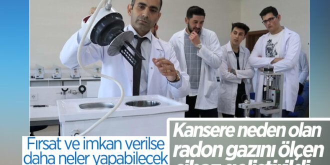 “Dünya Sağlık Örgütü metreküpte 100 bekerel üzerindeki radon gazı seviyesini zararlı kabul ediyor. Ülkemizde üst sınır, evlerde 400 bekerel, iş yerinde ise 1000 bekerel olarak belirlendi. Bunun aşılması durumunda müdahale edilmesi 2000 yılında yayınlanan Resmi Gazete’de yer almıştır. Soluduğumuz havada, içtiğimiz sularda radon gazı bulunabilir. Suyla içtiğimiz zaman mide kanseri olabiliriz. Radon gazı, soluduğumuz zaman akciğerlerimizdeki DNA yapısını bozarak akciğer kanseri olmamıza neden oluyor. Bu yüzden evlerimizde kullandığımız suyun ve soluduğumuz havanın radon oranını bilmemiz gerekir. Bu cihazla CR-39 dedektörüyle ortamdaki radonun konsantrasyonunu belirleyebileceğiz.”