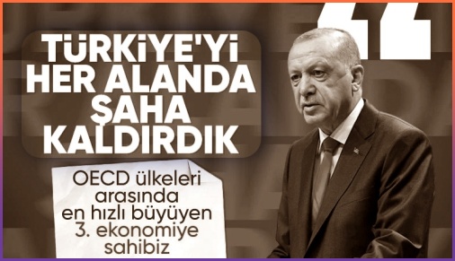 Cumhurbaşkanı Recep Tayyip Erdoğan, Türkiye Girişimci İş İnsanları Konfederasyonu’nun (TÜGİK) 7. Olağanüstü Genel Kurulu’nda yaptığı konuşmada, Türkiye ekonomisinin 2002 yılından bu yana gösterdiği performansa ilişkin değerlendirmelerde bulundu. Erdoğan, Türkiye’nin 21 çeyrek boyunca aralıksız büyüme kaydettiğini belirterek, “Ülkemiz OECD ülkeleri arasında en hızlı büyüyen üçüncü ekonomi konumuna yükseldi” dedi.