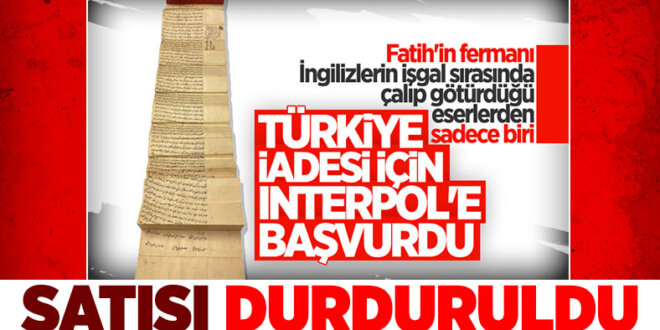 Londra’da dün satışa çıkarılacağı açıklanan Osmanlı Padişahı Fatih Sultan Mehmet Han’ın tuğrası olduğu Zağanos Paşa Vakfı’nın vakfiyesi, Türkiye’nin sıkı girişimleri sonucunda iptal edildi.