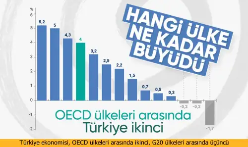 Türkiye, 2023 yılı büyüme rakamlarıyla, Ekonomik İşbirliği ve Kalkınma Örgütü’ne üye ülkeler arasında ikinci, G20 ülkeleri arasında üçüncü ülke oldu.