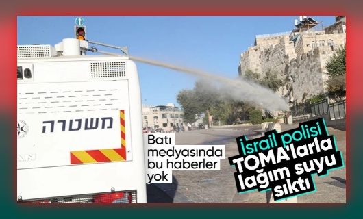 Gazeteci Adem Metan, İsrail polislerinin, cuma vaktinde seccadelerini açarak namaz kılmak isteyen vatandaşlara gaz bombası atarak TOMAlarla da lağım suyu sıktığını aktardı.