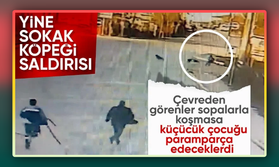 Okula gitmek için kaldırımda yürüyen küçük çocuk, aniden karşısına çıkan köpeklerin saldırısına uğradı. Yeren düşen çocuğu ısırmaya devam eden köpekler, çevredekiler yardıma koşunca kaçtı.